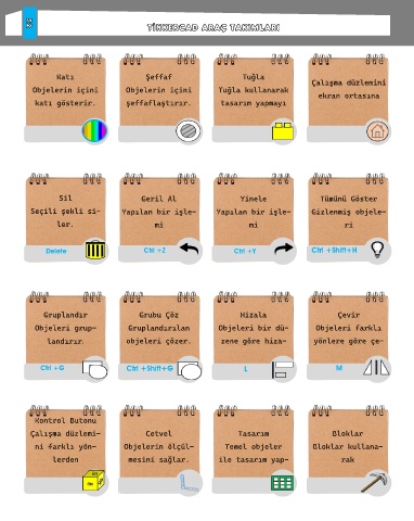 Seçili şekli si- Yapılan bir işle- Yapılan bir işle- Gizlenmiş objele-