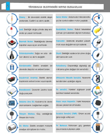 Led: Elektriğin doğru yönde akışı sıra- Redüktörlü Motor: Robot tekerlekleri