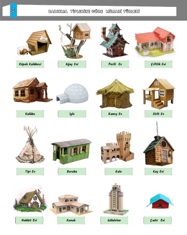 Köpek Kulübesi Ağaç Evi Perili Ev Çiftlik Evi Kulübe İglo Kamış Ev Stilt Ev Tipi Ev Baraka Kale Kuş Evi Hobbit Evi Konak Gökdelen Çadır Evi