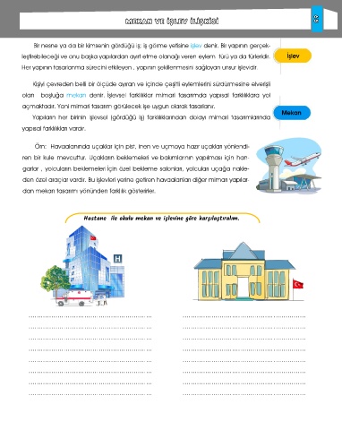 Hastane ile okulu mekan ve işlevine göre karşılaştıralım.