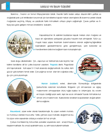 tiyaçlara göre gelişen mimari örneklerine bakalım.