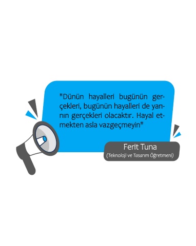 "Dünün hayalleri bugünün ger- çekleri, bugünün hayalleri de yarı- nın gerçekleri olacaktır. Hayal et- mekten asla vazgeçmeyin" Ferit Tuna (Teknoloji ve Tasarım Öğretmeni)
