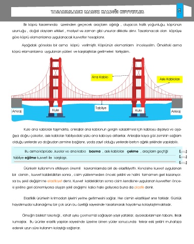 Aşağıdaki görselde bir asma köprü verilmiştir. Köprünün elemanlarını inceleyelim. Örnekteki asma