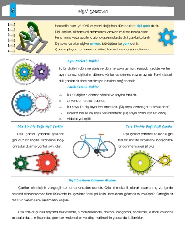Hareketin hızını, yönünü ve yerini değiştiren düzeneklere dişli çark denir.