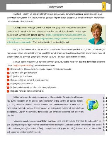 dir. Biyotaklit uzmanı olan Janine Benyus "Doğa, karşılaştığımız tüm zorlukları zaten çöz-