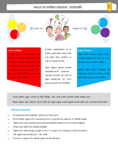 Öğrenciye dokunduğu rengin sıcak mı ? soğuk mu? olduğunu söylemesi istenir.