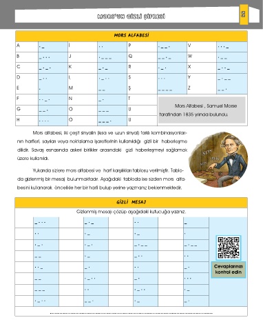 da gizlenmiş bir mesaj bulunmaktadır. Aşağıdaki tabloda ise sizden mors alfa-