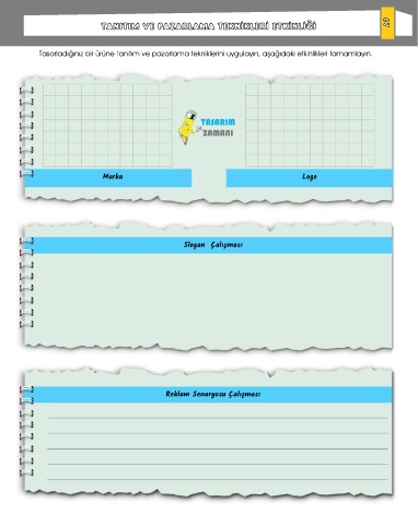 Tasarladığınız bir ürüne tanıtım ve pazarlama tekniklerini uygulayın, aşağıdaki etkinlikleri tamamlayın. Marka Logo Slogan Çalışması Reklam Senaryosu Çalışması