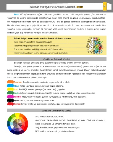mesajı doğru anlamasını sağlayacak renk unsuru ile desteklenmelidir. Aşağıda çeşitli renkler ve bu renklerin