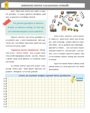 “Ergonomik Sınıfımı Tasarlıyorum” etkinliği- açısından kullanımını , sınıf panolarını , çöp kutu-