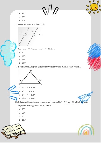 9. Besar sudut KLM pada gambar di bawah dinyatakan dalam a dan b adalah.....