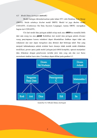 dari satu orang tua atau parent. Kelebihan dari model data jaringan adalah efisiensi