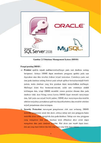b) Security Protection menangani pengaksesan oleh user terlarang. DBMS