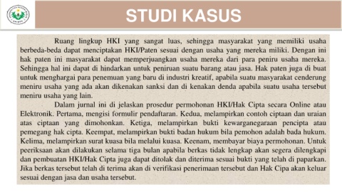 Dalam jurnal ini di jelaskan prosedur permohonan HKI/Hak Cipta secara Online atau