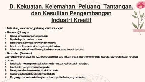 Dalam buku Kerajinan (2006: 110-112), kelemahan sumber daya industri kreatif seperti tercermin pada beberapa kelemahan industri kerajinan