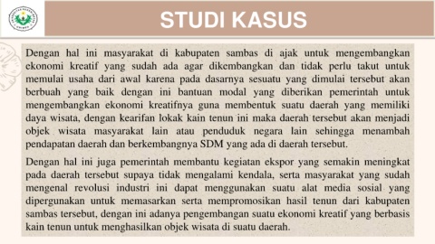 sambas tersebut, dengan ini adanya pengembangan suatu ekonomi kreatif yang berbasis