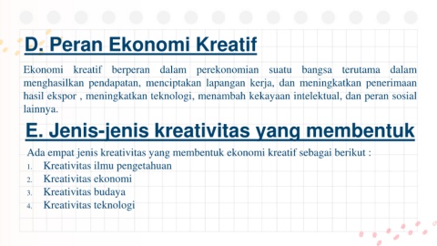 Ekonomi kreatif berperan dalam perekonomian suatu bangsa terutama dalam