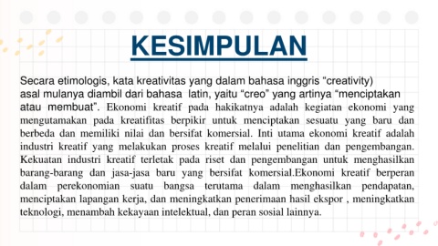 Secara etimologis, kata kreativitas yang dalam bahasa inggris “creativity)