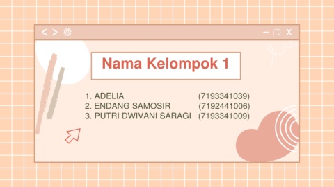 Nama Kelompok 1 1. ADELIA (7193341039) 2. ENDANG SAMOSIR (7192441006) 3. PUTRI DWIVANI SARAGI (7193341009)