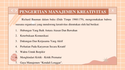 suasana organisasi yang mendorong kreativitas ditentukan oleh hal berikut: