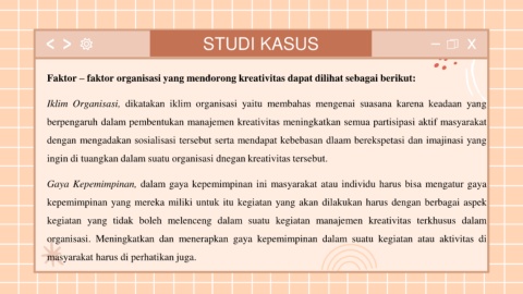 Faktor – faktor organisasi yang mendorong kreativitas dapat dilihat sebagai berikut: