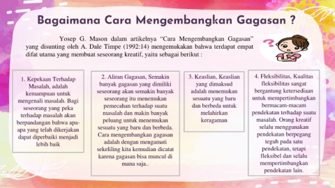 Yosep G. Mason dalam artikelnya “Cara Mengembangkan Gagasan”