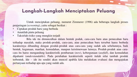 Untuk menciptakan peluang, menurut Zimmerer (1996) ada beberapa langkah proses