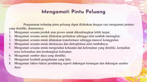 Pengamatan terhadap pintu peluang dapat dilakukan dengan cara mengamati potensi