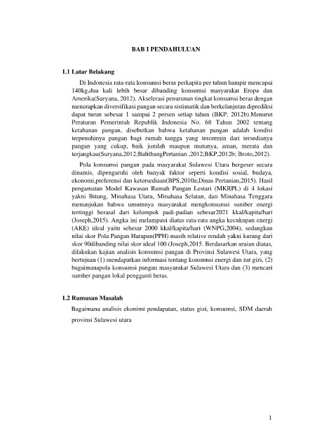 bagaimanapola konsumsi pangan masyarakat Sulawesi Utara dan (3) mencari