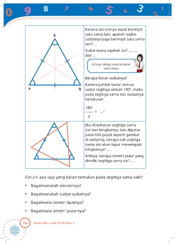 Ciri-ciri apa saja yang kalian temukan pada segitiga sama kaki?