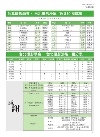 台北攝影學會・ ̨̏ᙲᅂӍᎲ 積分表