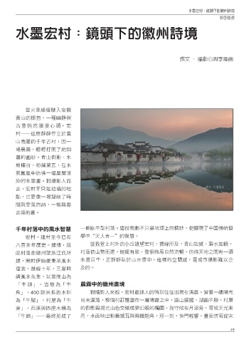 角」,400 餘米長的水圳 對攝影人來說,宏村最迷人的時刻往往出現在清晨。當第一縷陽光