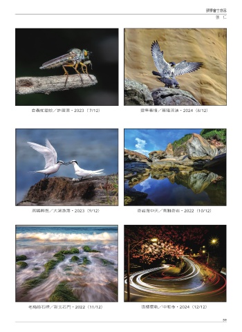 ၂ኪึɻชԊ ੵ ʠ 食蟲虻獵蚊/許厝港·2023(˙7/12) 遊隼春情/基隆深澳·2024(8/12) 燕鷗孵蛋/大溪漁港·2023(9/12) 奇岩海中天/南雅奇岩·2022(10/12) 老梅綠石槽/新北石門·2022(11/12) 夜櫻車軌/中和市·2024(12/12) 59