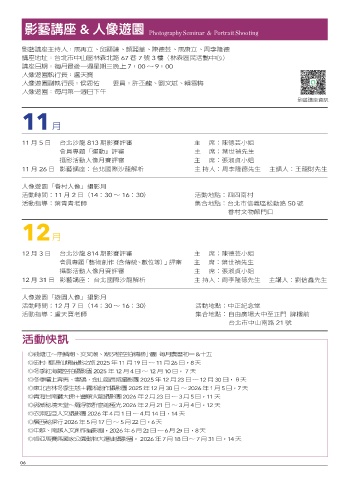 12 月 31 日 影藝講座: 台北國際沙龍解析 主 持人:周李隆德先生 主講人:劉信鑫先生