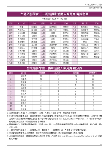̨̏ᙲᅂኪึ・攝影活動人像月賽 積分表
