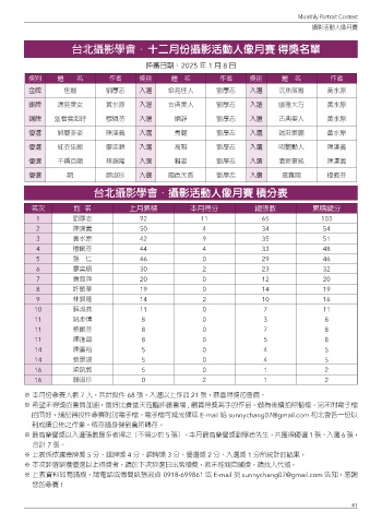 ̨̏ᙲᅂኪึ・攝影活動人像月賽 積分表