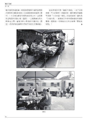 生活用品的流動小販(圖四)。三貂嶺車站與大                            「火燒天燈」,面對這古今中外絕無僅有的攝影