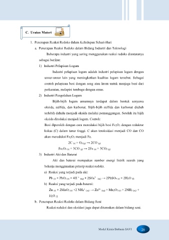 a. Penerapan Reaksi Redoks dalam Bidang Industri dan Teknologi