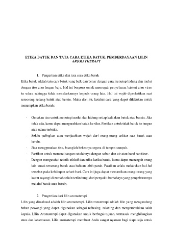 ETIKA BATUK DAN TATA CARA ETIKA BATUK, PEMBERDAYAAN LILIN