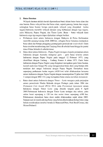 b. Batas darat antara Indonesia – Papua Nugini mengacu kepada perjanjian antara