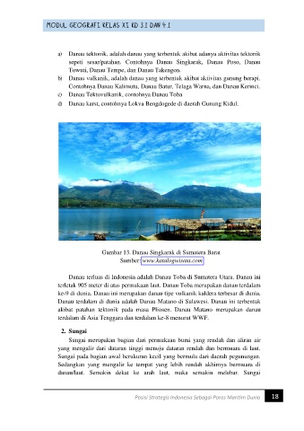 a) Danau tektonik, adalah danau yang terbentuk akibat adanya aktivitas tektonik