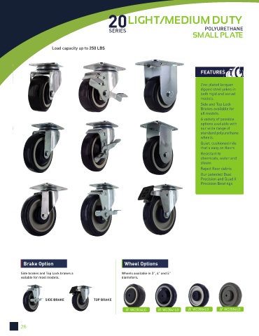 Side brakes and Top Lock brakes a Wheels available in 3", 4" and 5"