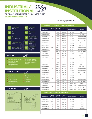 R Resistant to Chemicals R Wide range of wheel Z26P344NEKIR 5 1/8” 250 LBS 4 x 4 1/2” Directional Brake