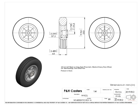 P&H Casters Scale 1:4 Volume ( mm ^ 3) Drawn By: 2019/8/2