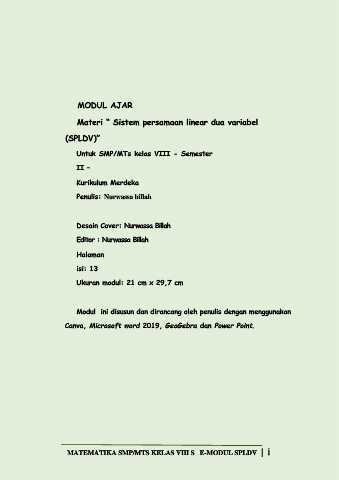 MATEMATIKA SMP/MTS KELAS VIII S E-MODUL SPLDV | i