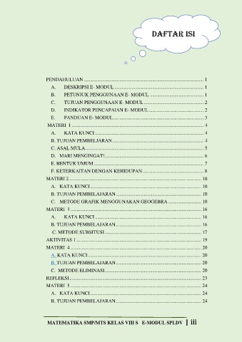 MATEMATIKA SMP/MTS KELAS VIII S E-MODUL SPLDV | iii