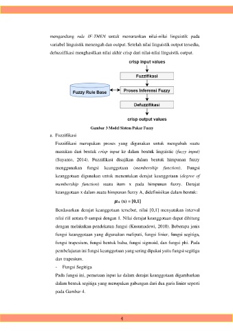 (Suyanto, 2014). Fuzzifikasi disajikan dalam bentuk himpunan fuzzy