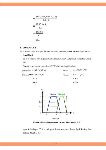Gambar 30 Fungsi Keanggotaan Variabel Suhu, Input = 33 C