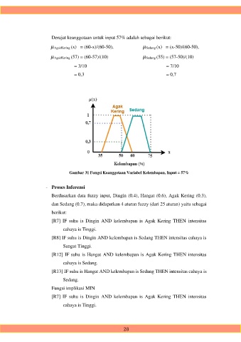Gambar 31 Fungsi Keanggotaan Variabel Kelembapan, Input = 57%