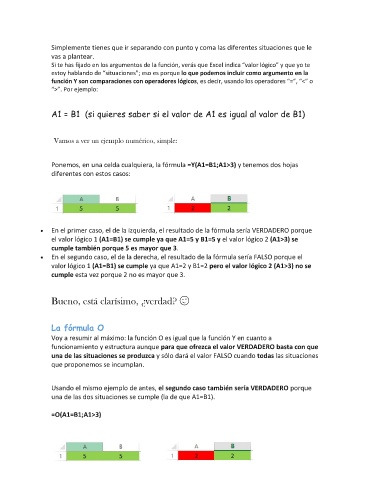 función Y son comparaciones con operadores lógicos, es decir, usando los operadores “=”, “<” o